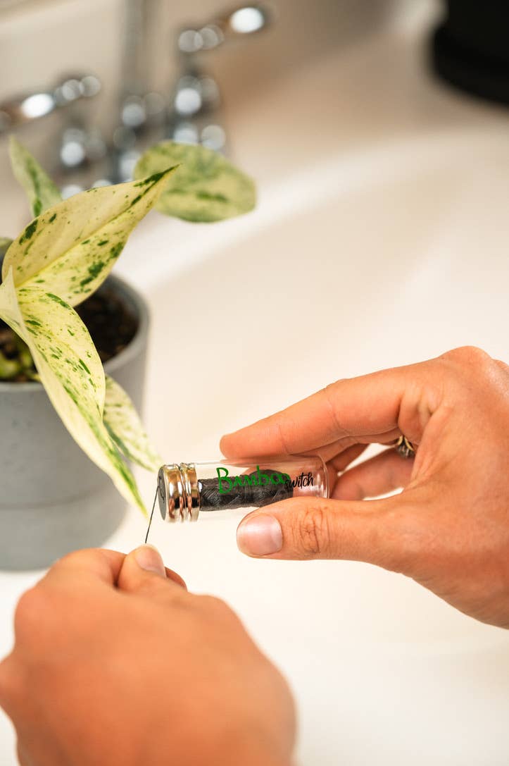 Bamboo Floss is made from organic wax and natural ingredients (we use peppermint oil and candelilla wax) making it compostable. Our bamboo floss won't sit in the landfills or pollute our waterways for the many years to come as opposed to traditional plastic fiber floss.