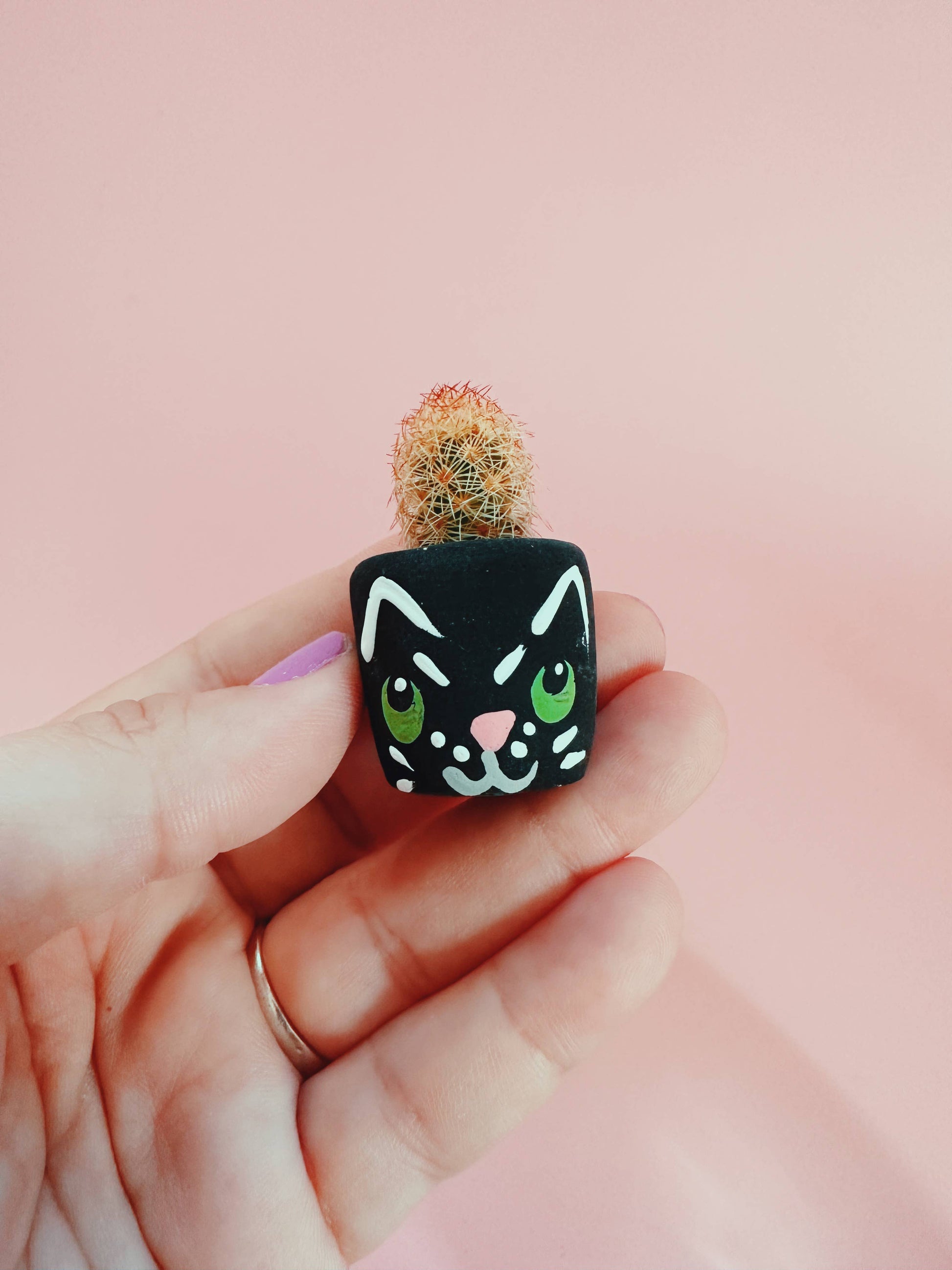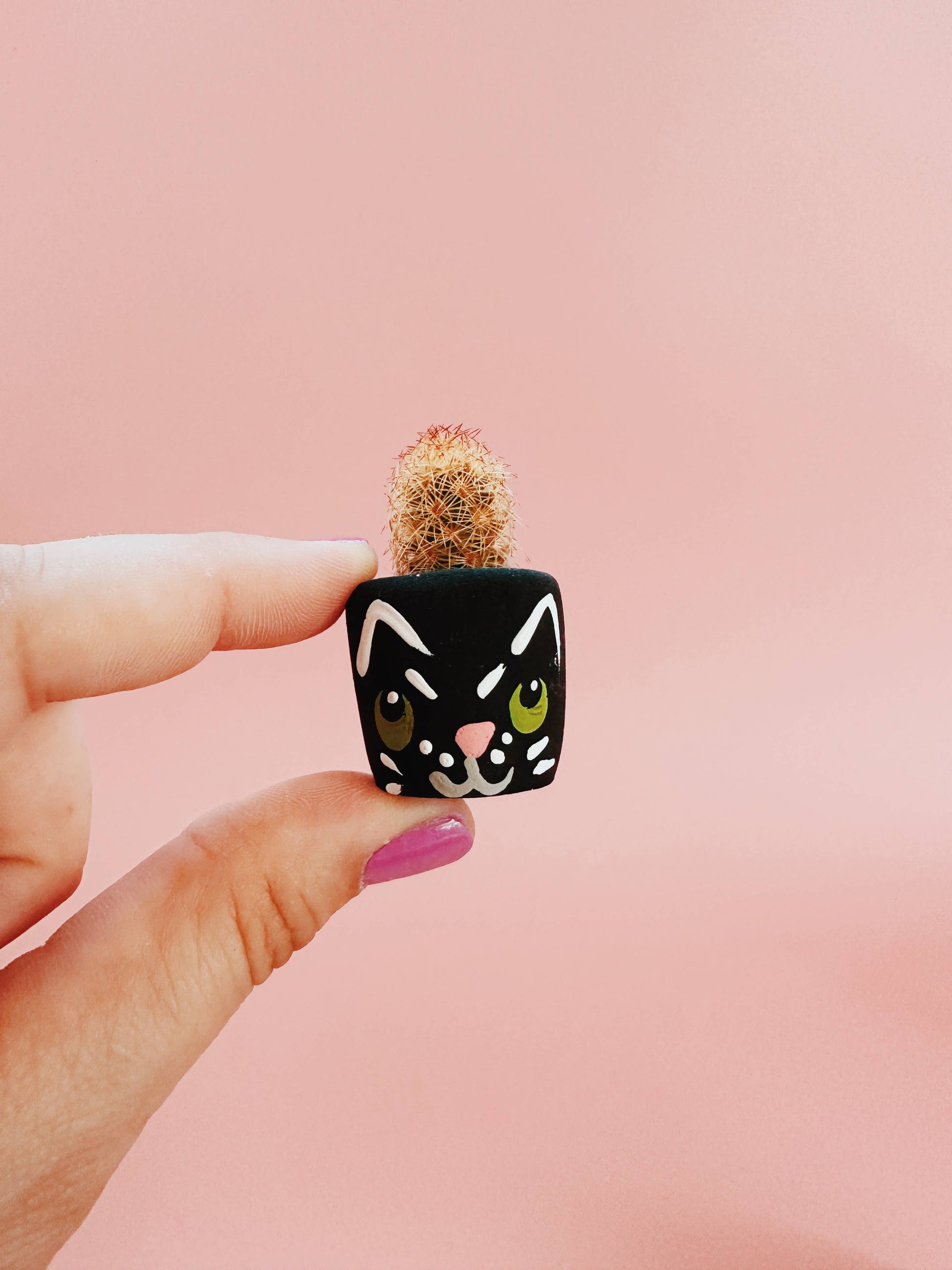 This baby plant is in a cute concrete pot handmade, painted and planted by me.  It’s approximately 2 inches tall and 1 inch wide.
