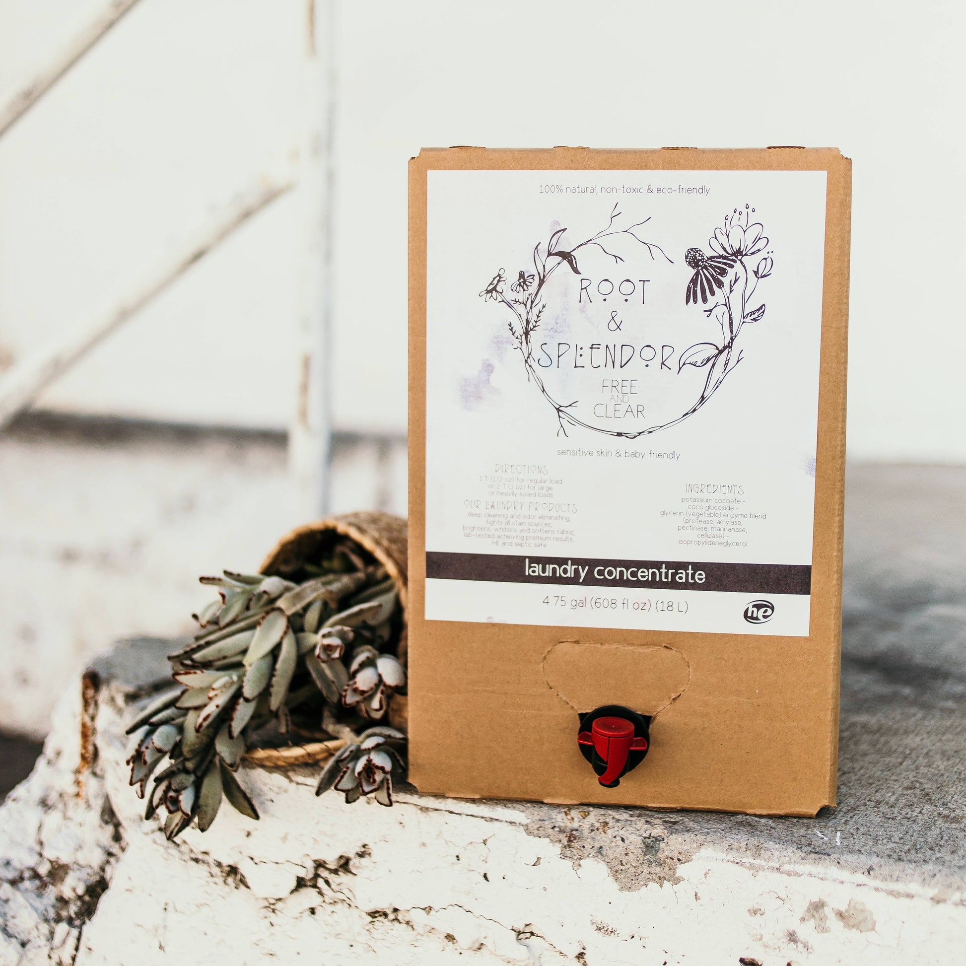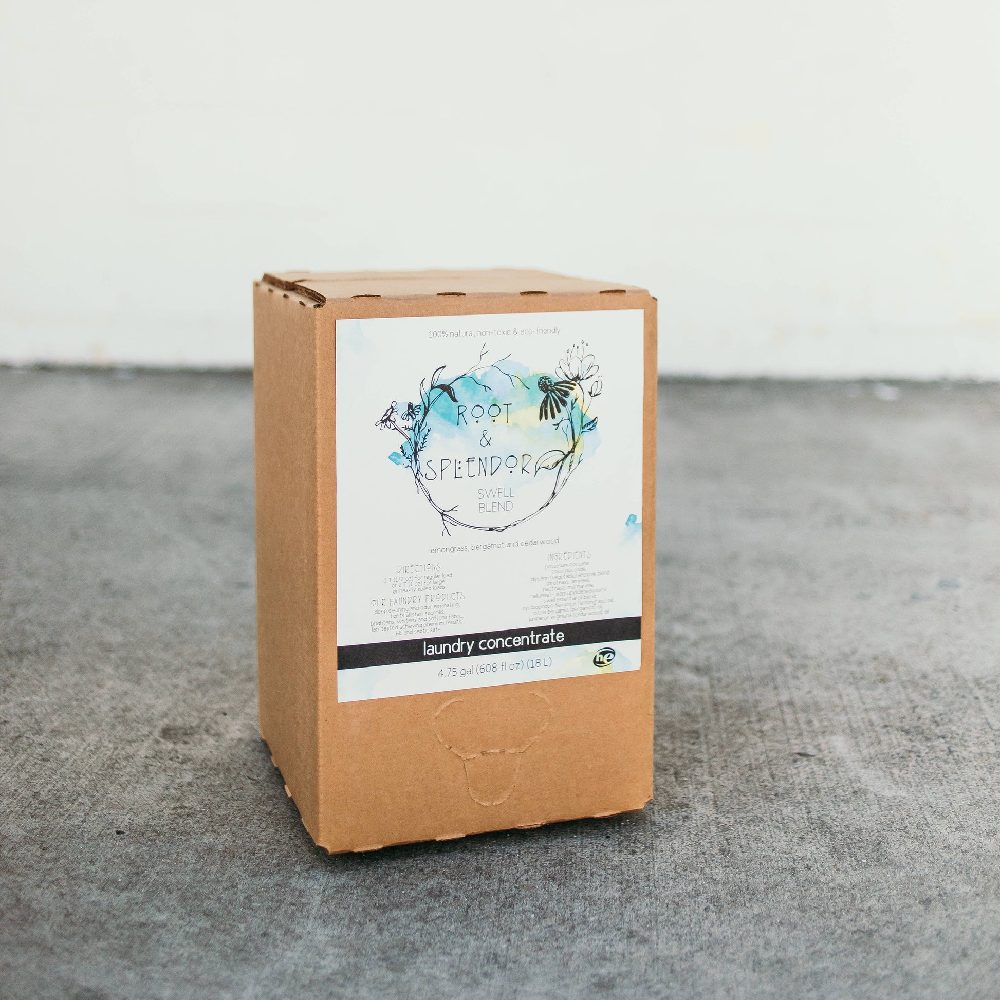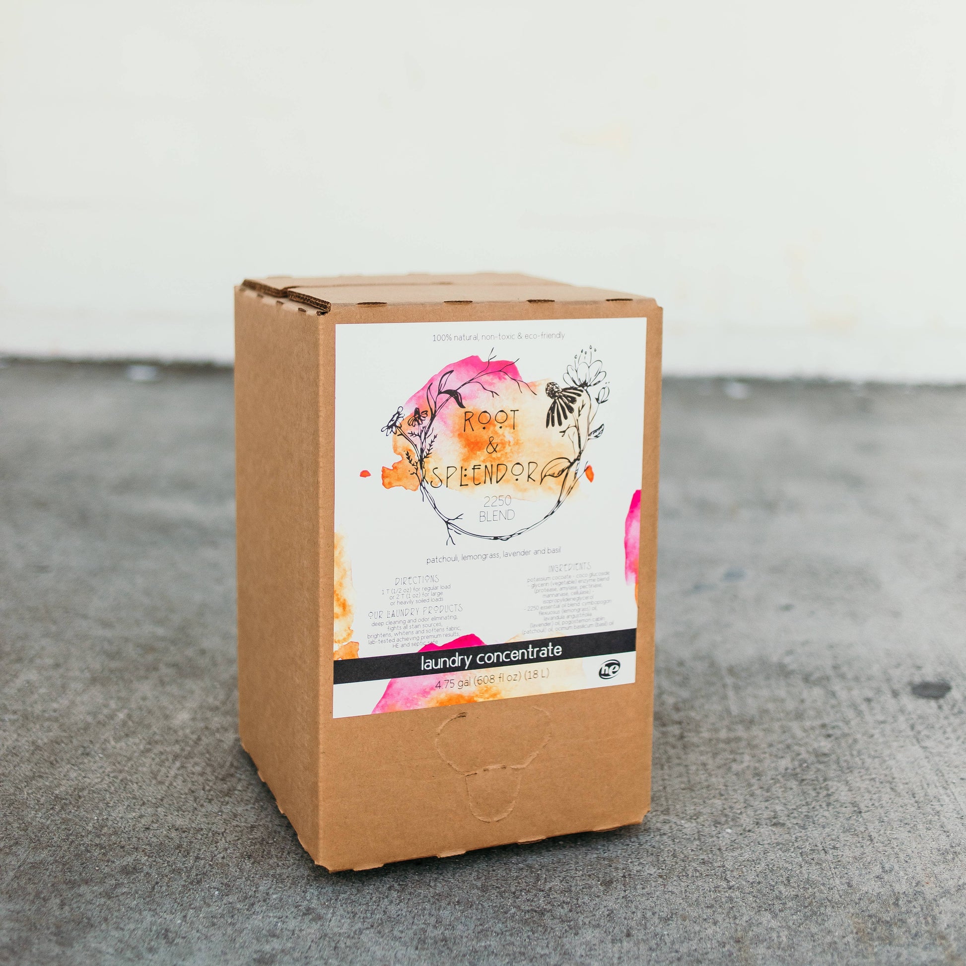 .60 an ounce. This bulk laundry soap is perfect for the shop wanting to add refillable or low waste options. 100% natural, 100% non-toxic and 100% eco-friendly, our ultra-concentrated formula delivers outstandingly effective results while never wavering in our commitment to protect your health and our planet. Third-party lab tested and achieving premium results, we require only 1/2 fl oz (1 Tablespoon) of product for the best laundry experience ever. Available in sustainable, 18 L bag-in-box (1,216 loads, 778 oz. or 608 fl oz.), 30-gallon (7,680 loads, 4,915 oz or 3,840 fl oz), or 50-gallon (12,800 loads, 8,192 oz or 6,400 fl oz) closed-loop packaging in your choice of 4 pure and natural essential oil blends, or unscented: 2250 Blend – patchouli, lavender, lemongrass & basil Hush Blend – lavender, rosemary & sandalwood Swell blend – lemongrass, bergamot & cedarwood Humble blend –frankincense, basil & lime Free and Clear – unscented for extra sensitive skin and baby-friendly