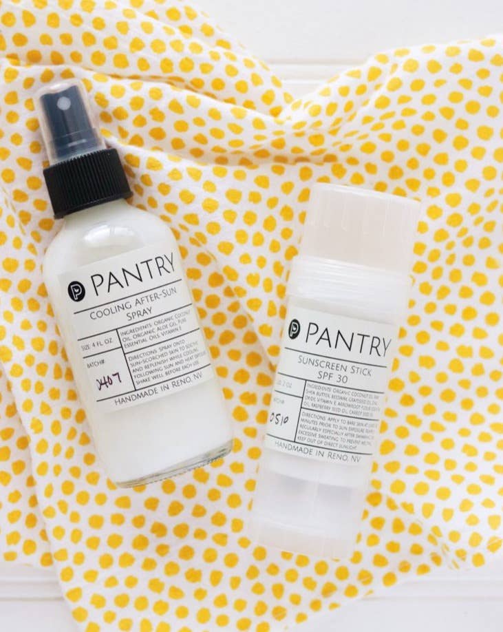 Playful nicknamed “A/C in a bottle”, Pantry Products' Cooling After-Sun Spray is the ideal treat for hot days + sun-scorched bodies. Whether you’re hitting the slopes, hitting the trails, or heading out for some camping, our Cooling After-Sun Spray is made up of the stuff outdoor skin yearns for: a sunburn and windburn soothing blend of organic aloe gel, coconut oil, and eucalyptus and pepper Blended with organic aloe vera gel, organic coconut oil, and cooling peppermint & eucalyptus essential oils, this spritz works to soothe and replenish your skin while cooling the sensation of long days basking in the sun. Ingredients: organic aloe gel, organic aloe juice, fractionated coconut oil, vitamin e, peppermint + eucalyptus essential oils Packaged in recycled PET bottle with twist-on top.