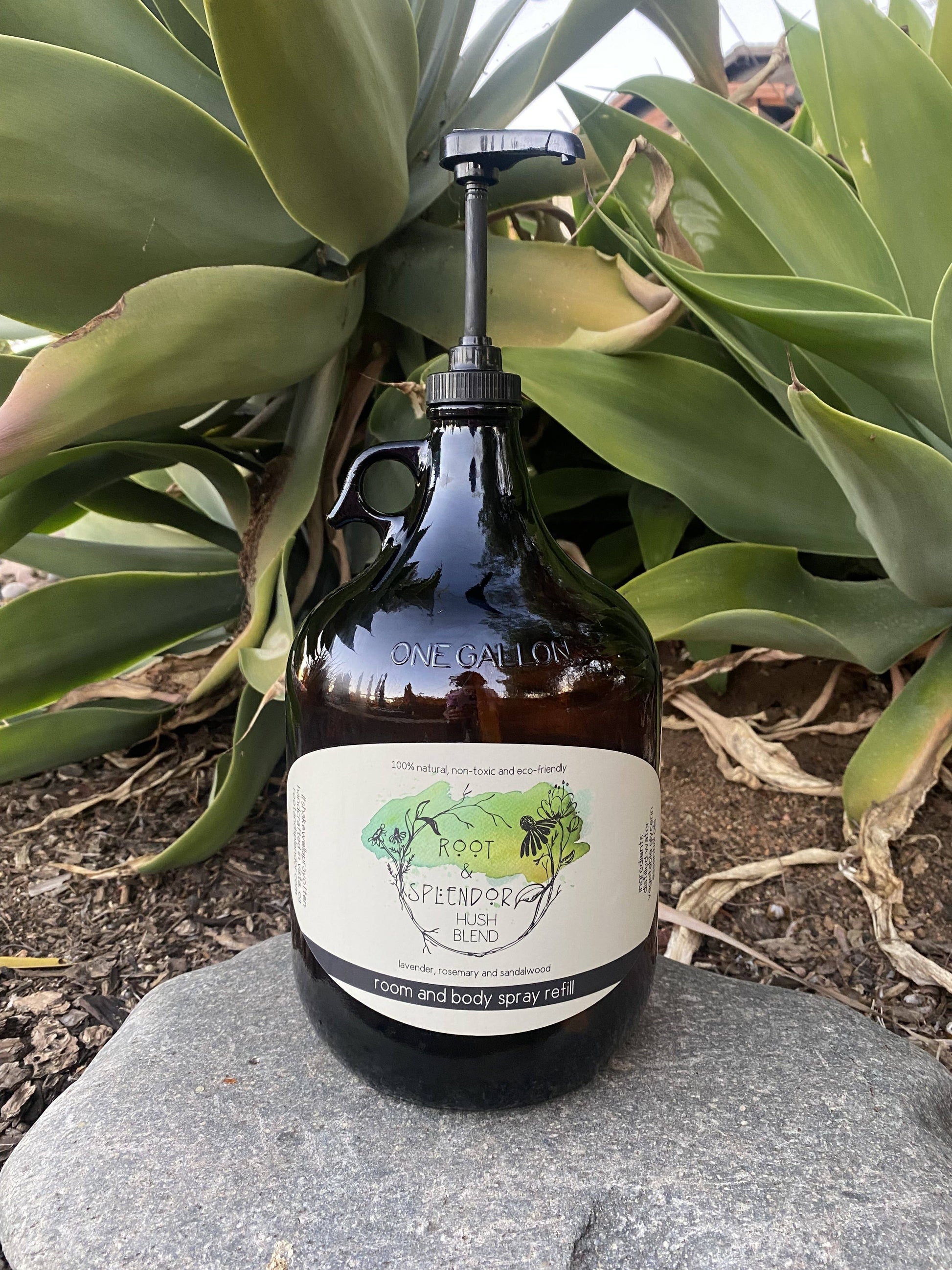 Hush (lavender, rosemary, sandalwood), Our handcrafted room and body sprays are composed of Root and Splendor's blends of pure and natural essential oils, vegetable glycerin, and distilled water. Specifically crafted for wonderful aromas and emotional well-being. Each ingredient is carefully selected for the safety of our health and environment.