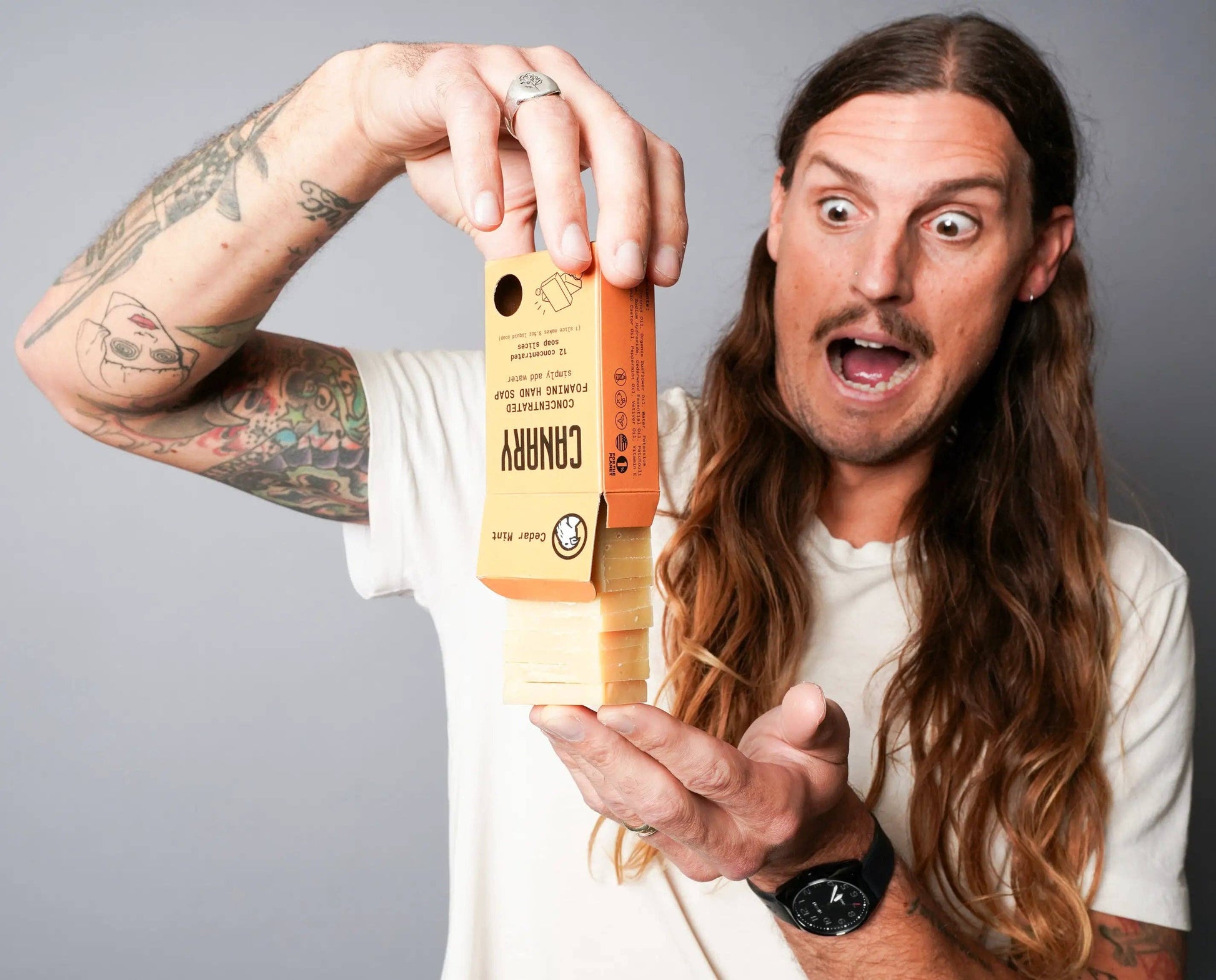 Introducing our Plastic-Free Canary Concentrated Hand Soap Refill Bars - a sustainable solution to reduce plastic waste in your home. Infused with the invigorating scent of Cedar Mint, these bars offer a harmonious blend of warm, woody notes complemented by a refreshing minty essence.