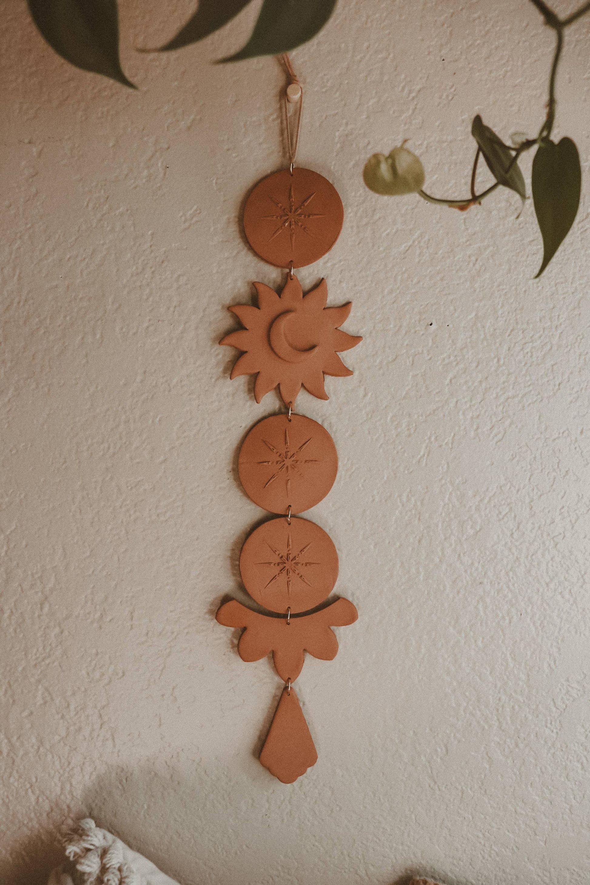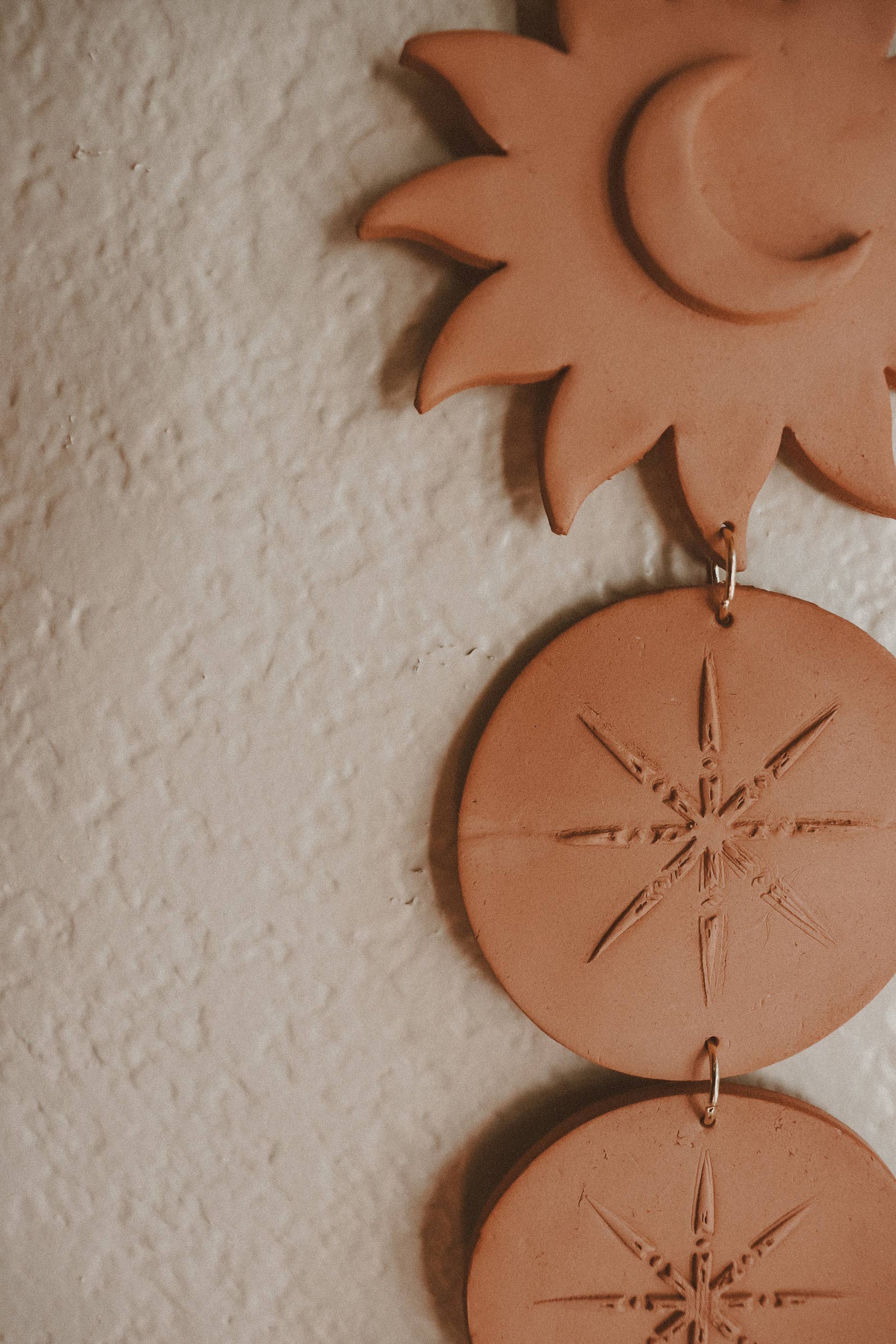 Celestial Sun and Moon Clay Wall Hanging: White Marble