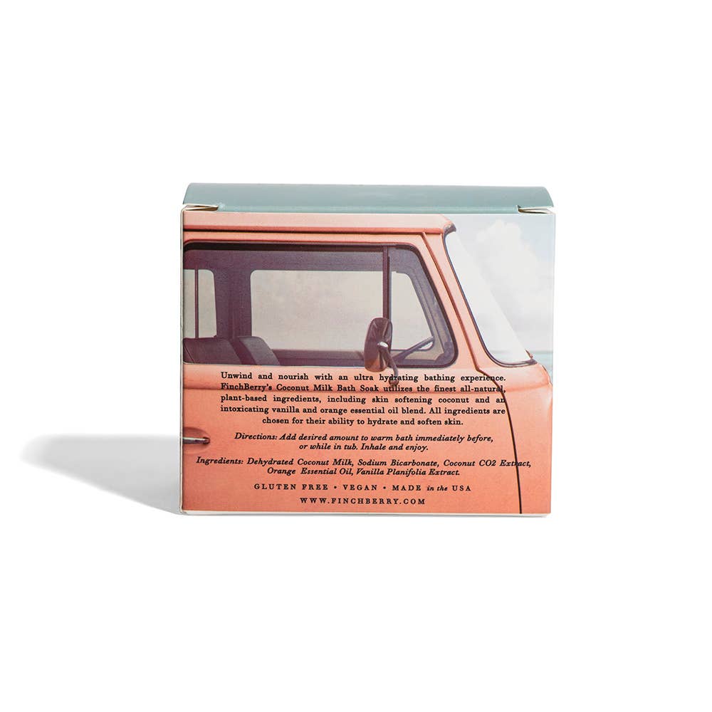 Unwind and nourish with an ultra hydrating bathing experience. FinchBerry's Coconut Milk Bath Soak utilizes the finest all-natural, plant-based ingredients, including skin softening coconut and an intoxicating vanilla and orange essential oil blend. All ingredients are chosen for their ability to hydrate and soften skin.