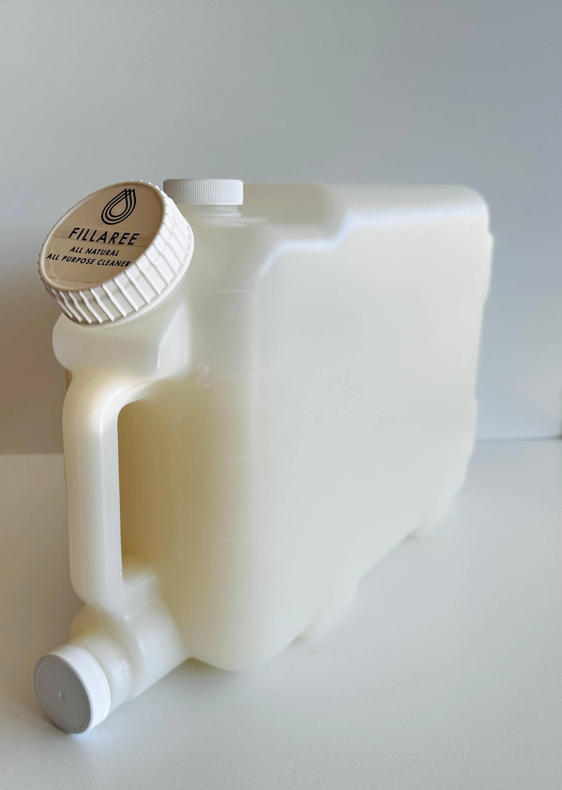.50 an ounce. 320 fl. Oz - 2.5 GALLON Reusable Returnable Refill Experience a toxin-free clean with our natural, fragrant all-purpose cleaning spray, available in our 2.5-gallon Bulk Refill. This cleaning powerhouse effortlessly conquers grease and grime on various nonporous surfaces like countertops, porcelain, and bathroom fixtures. Each 2.5-gallon Bulk Refill, conveniently packed in a reusable bag, is designed for easy pouring into your chosen container. Our recommended 2-gallon jug and pump combo, renowned for its functionality and convenience, is compact, durable, and easy to clean. It arrives branded and empty, ready for your shelves. While you can use your containers, we require the Fillaree Logo and ingredients to be displayed. Embrace sustainability with our Return Program, offering free shipping for 10-20 empty bags. We'll handle the rest—washing, sanitizing, and refilling.
