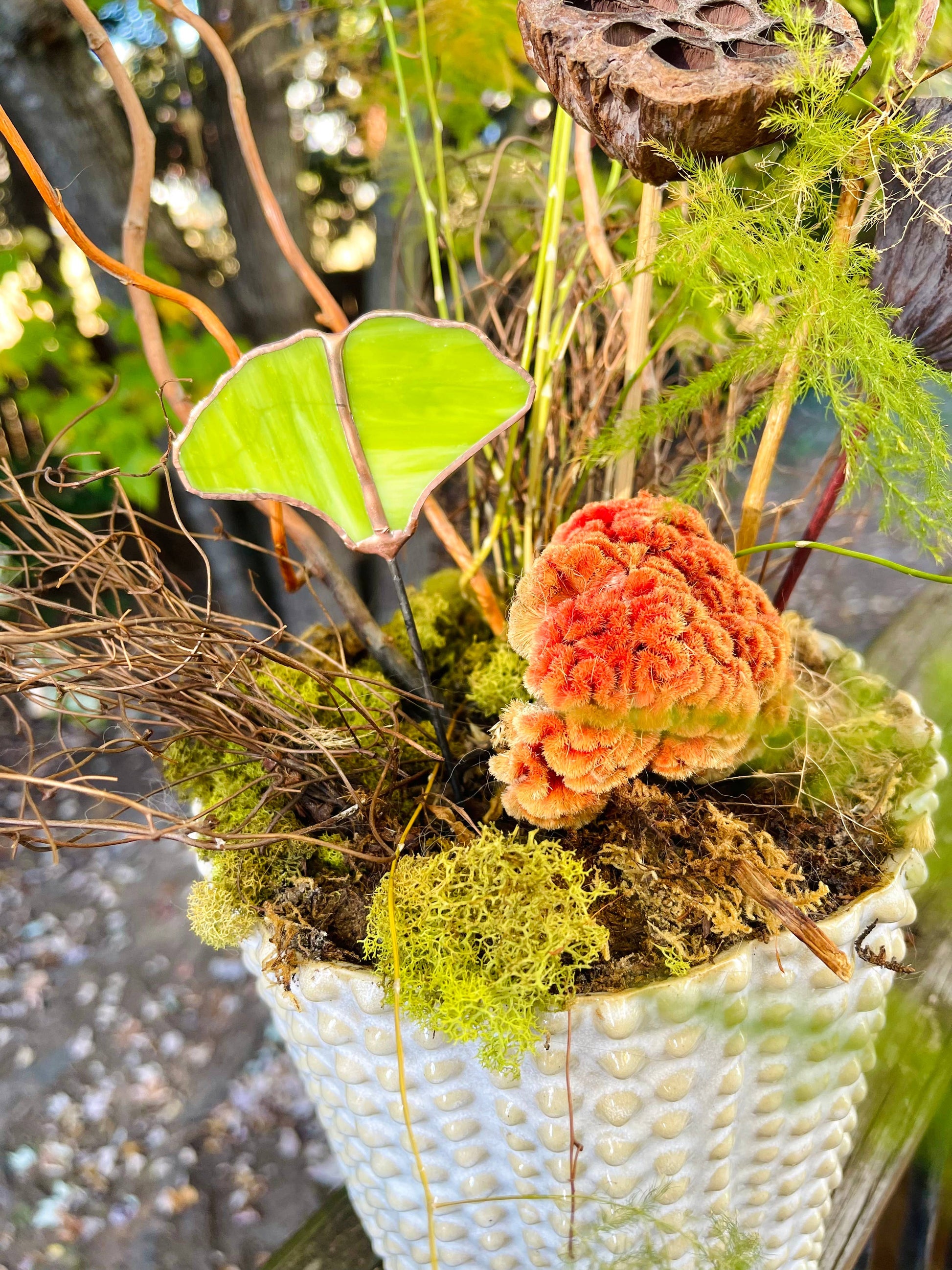 We are obsessed with these cute little glass ginkgo leaves! Stick em’ in your favorite house plants or create a glass bouquet using a vase filled with sand.