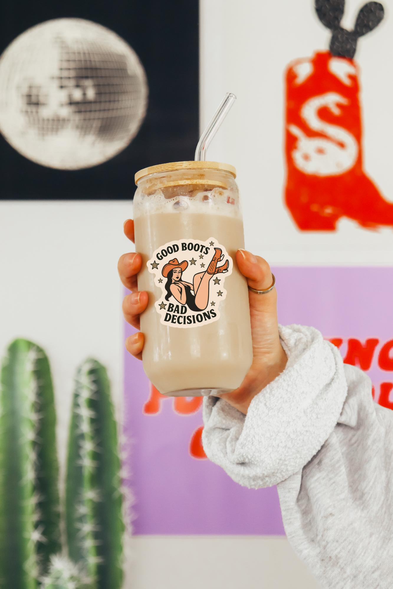 Good Boots Bad Decisions Sticker – Retro Pin-Up Cowgirl