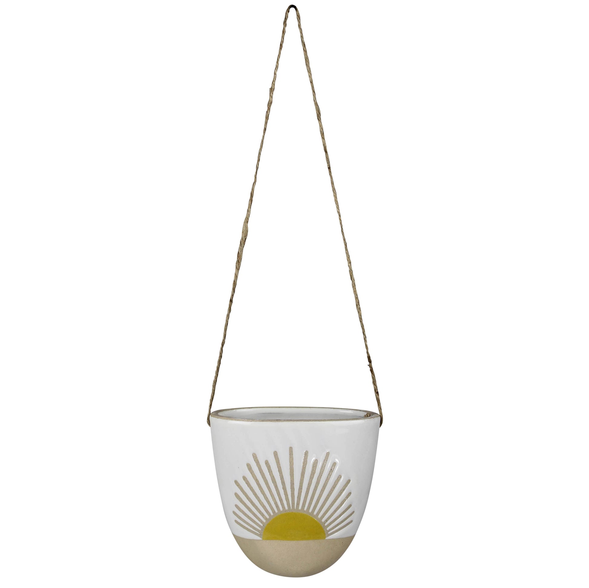 Either rising or setting, this bright shining hanging vase emblazoned with a sun makes the perfect vessel to suspend a plant or floral.