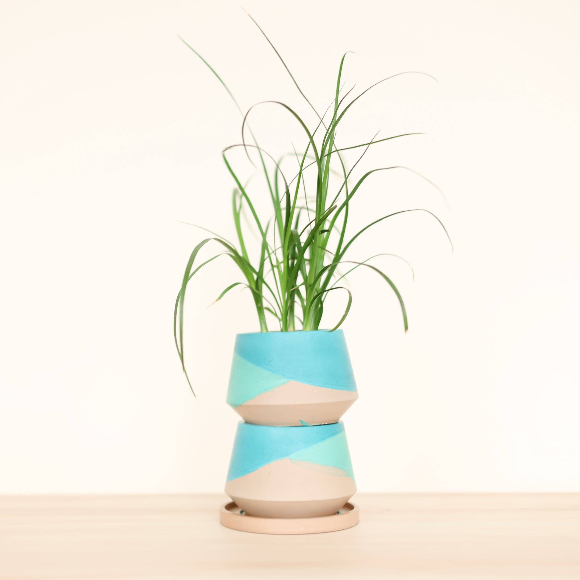 This modern shaped concrete planter is the perfect addition to your home! With a 3 inch diameter and depth, this planter is the perfect size for small plants and succulents. The concrete is sealed to ensure durability and strength, and the shape of the planter adds a unique, modern touch to any room. This planter is the perfect way to bring life and color to your home.