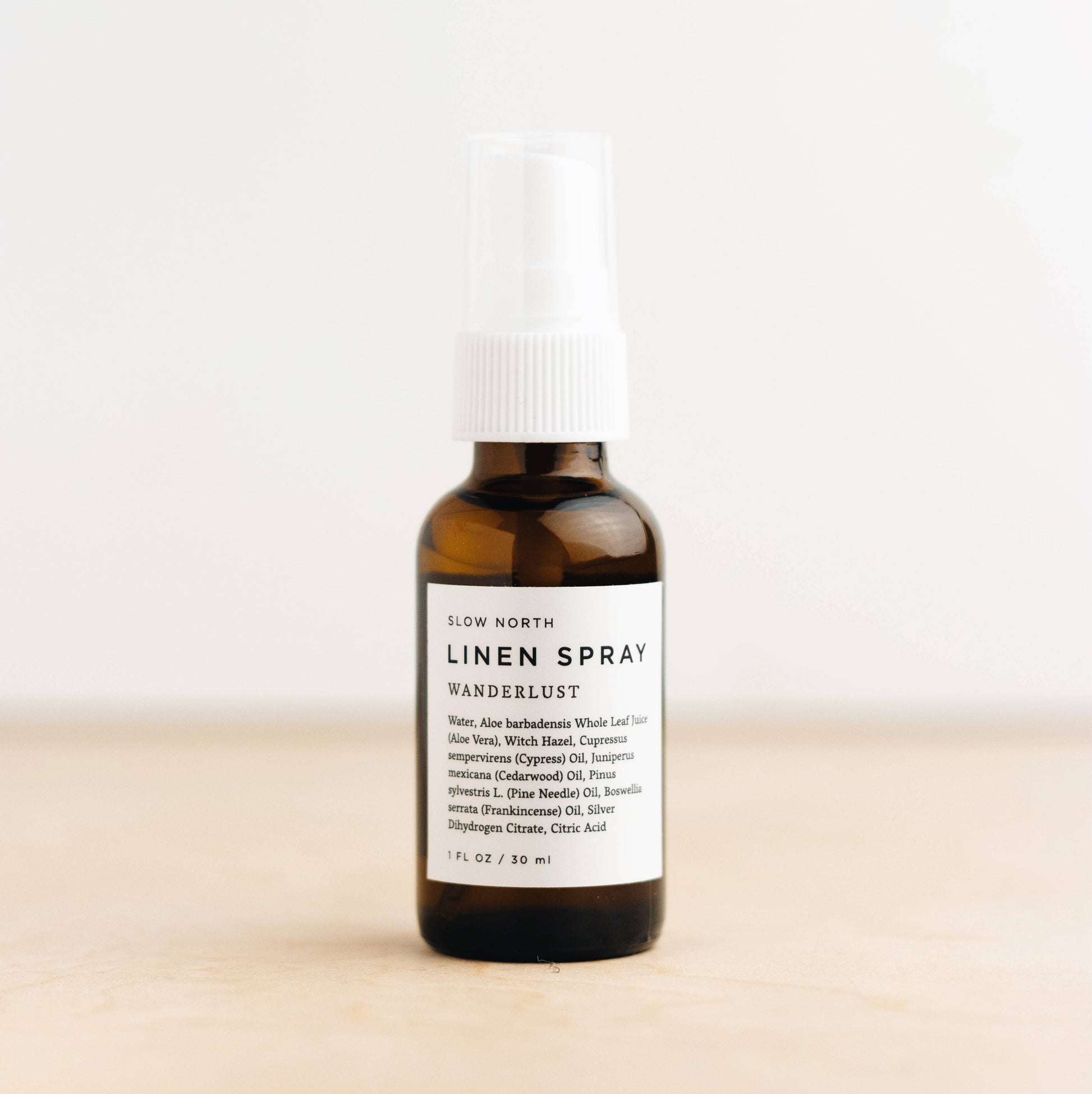A travel-size version of our popular linen spray. Slip into a pocket or bag for aromatherapy on the go! Our custom blend of cypress, cedarwood, pine, and frankincense essential oils – is grounding and soothing; with a clean and fresh aroma. Now in a new, amber glass bottle!