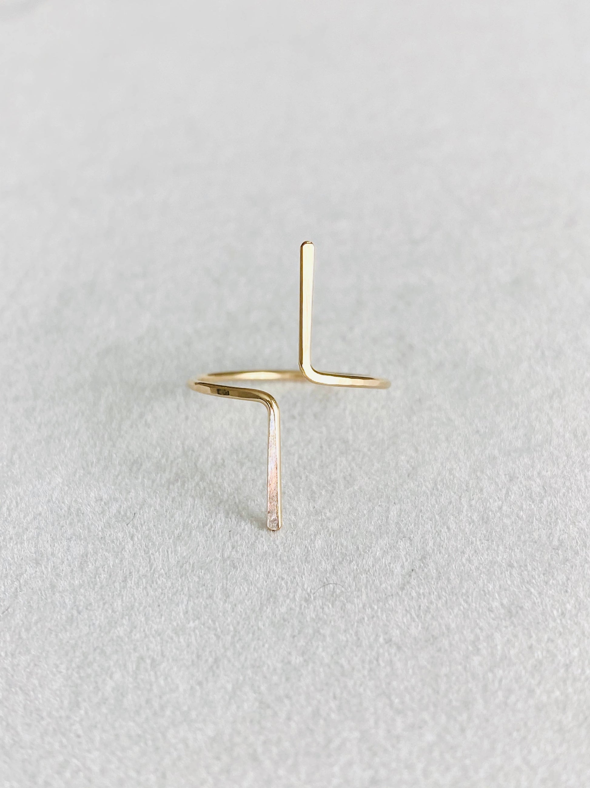 The North/South ring is stackable, adjustable, and dainty and can be worn regular or as a midi ring.
