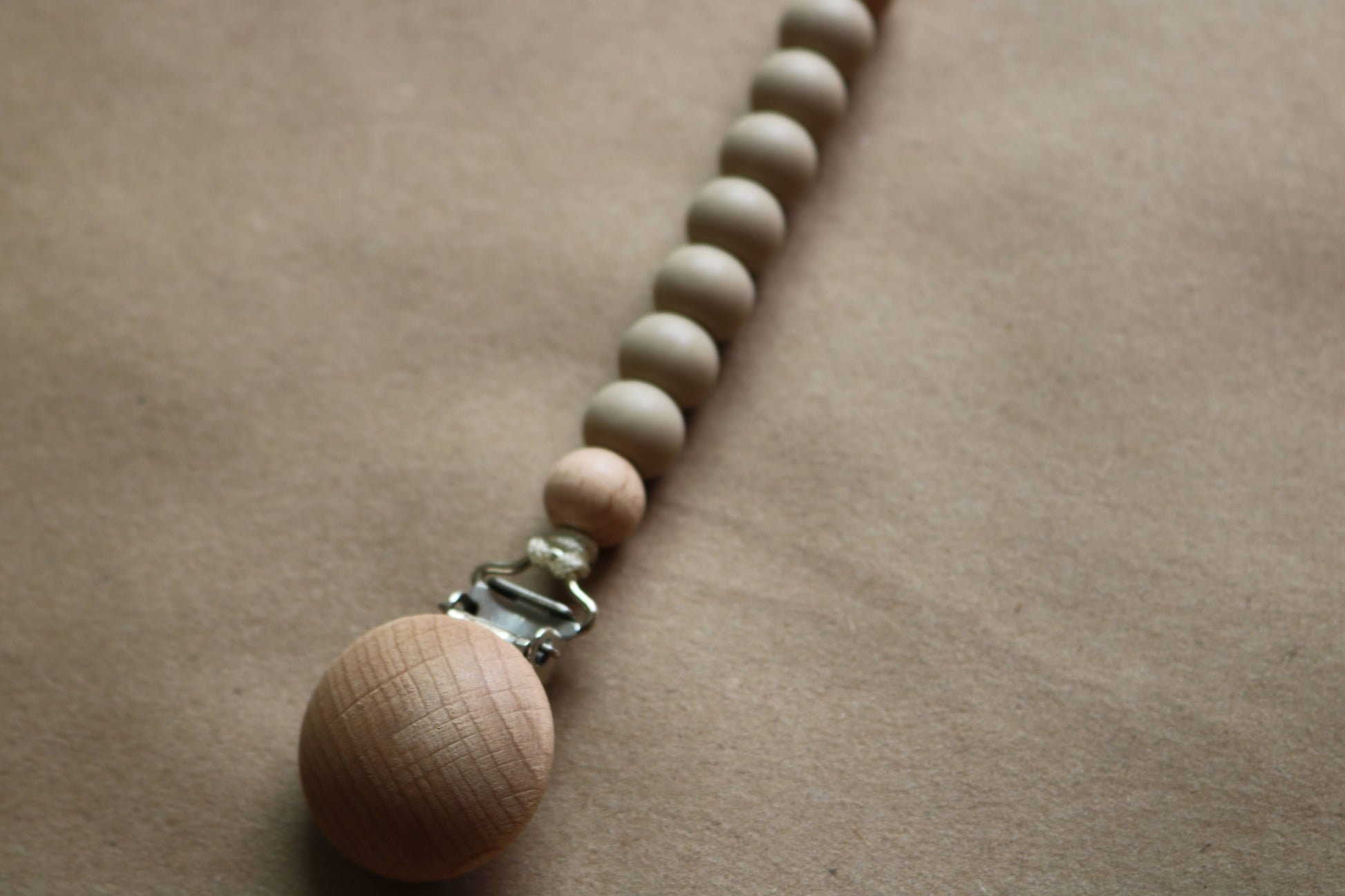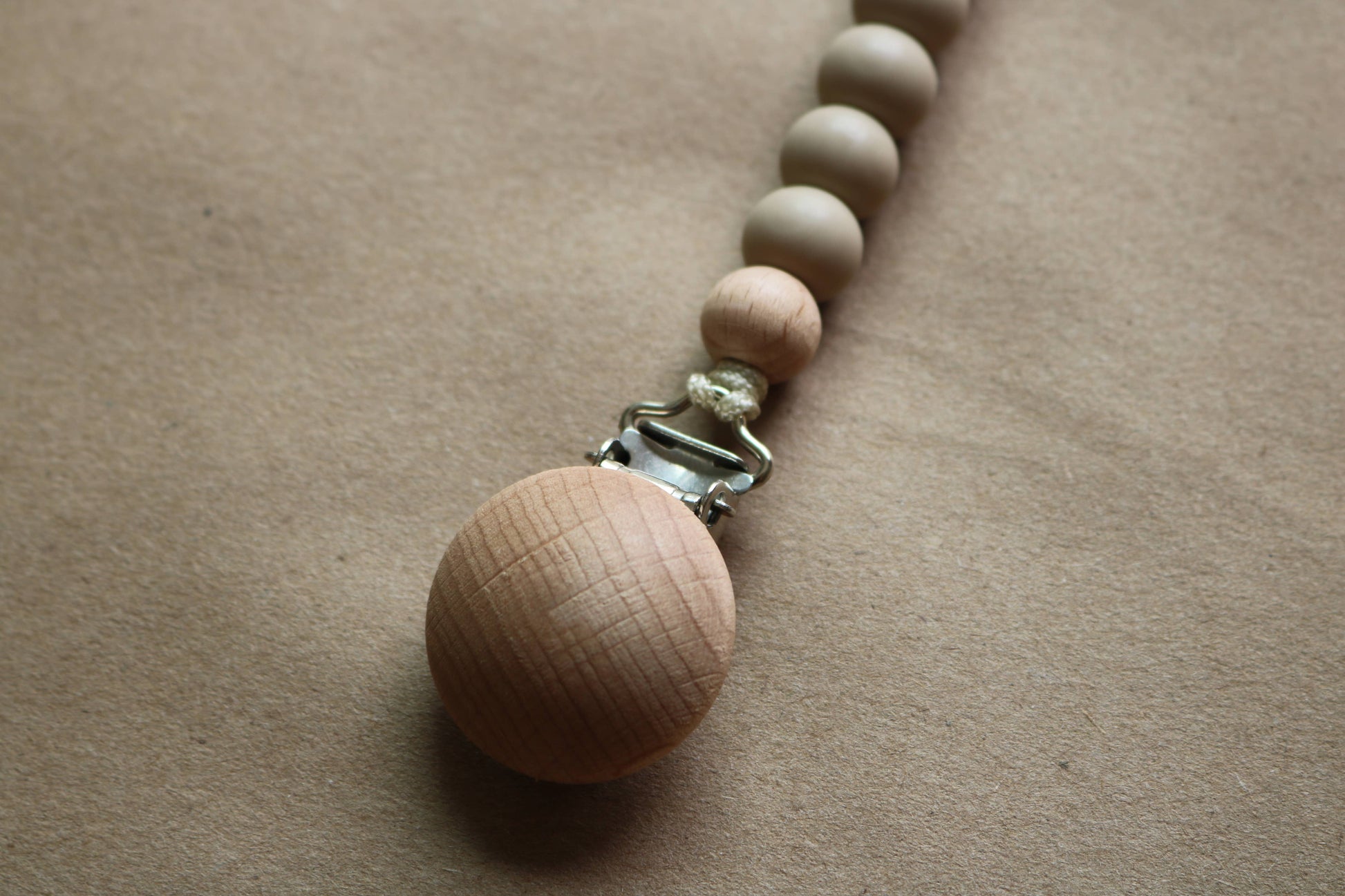 Easily attach pacifiers, toys, or sippy cups to our Pacifier Clips and be out the door in no time. Clip on to clothing, stroller, or diaper bags for on-the-go teething relief. Our products are built to last with food grade silicone and real polished beech wood. Our products are BPA Free, Lead Free, Phthalate Free and safe for teething. Bundle our pacifier clip with the matching teething ring in White, Sage, Blush, Navy Light Gray and Oatmeal!
