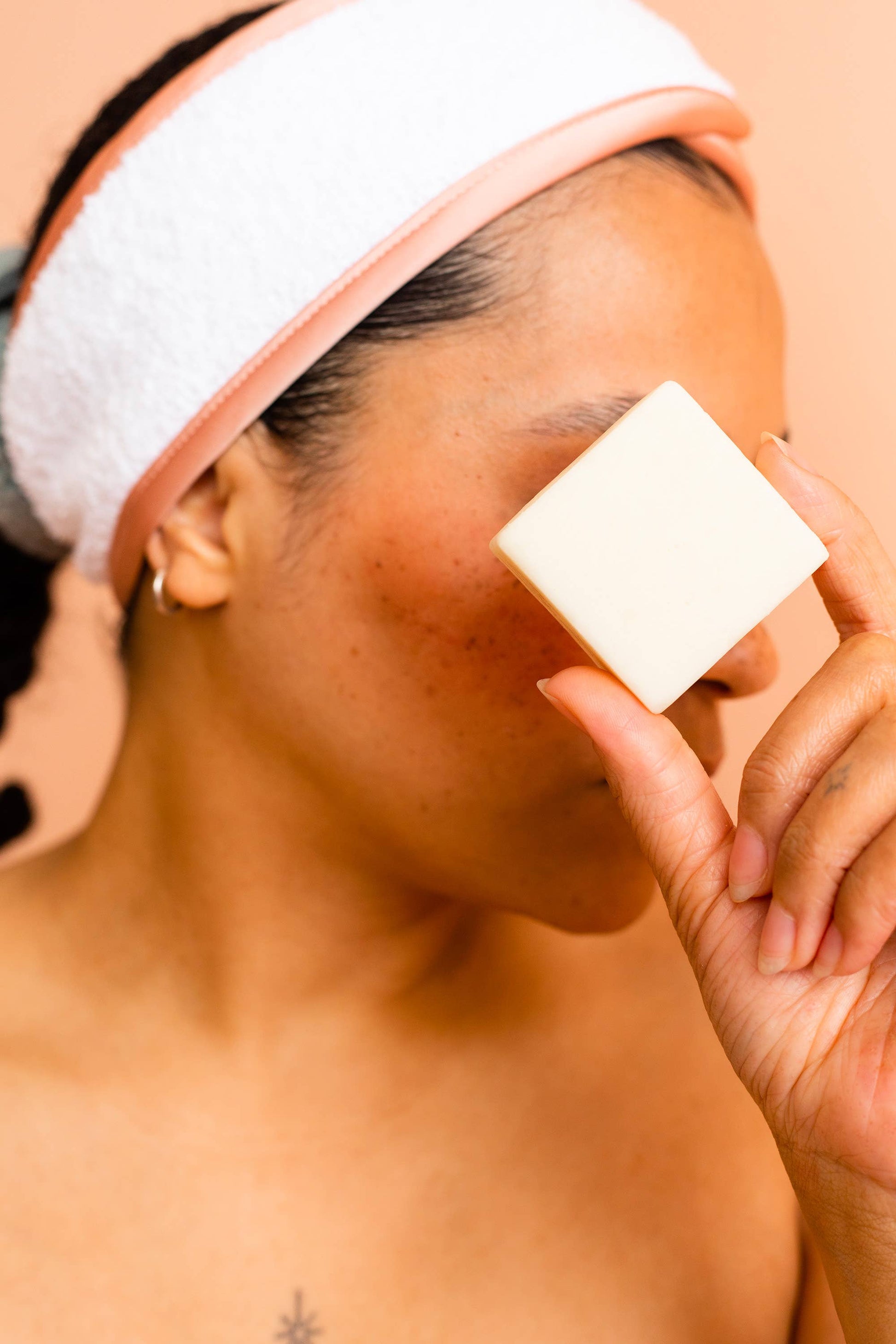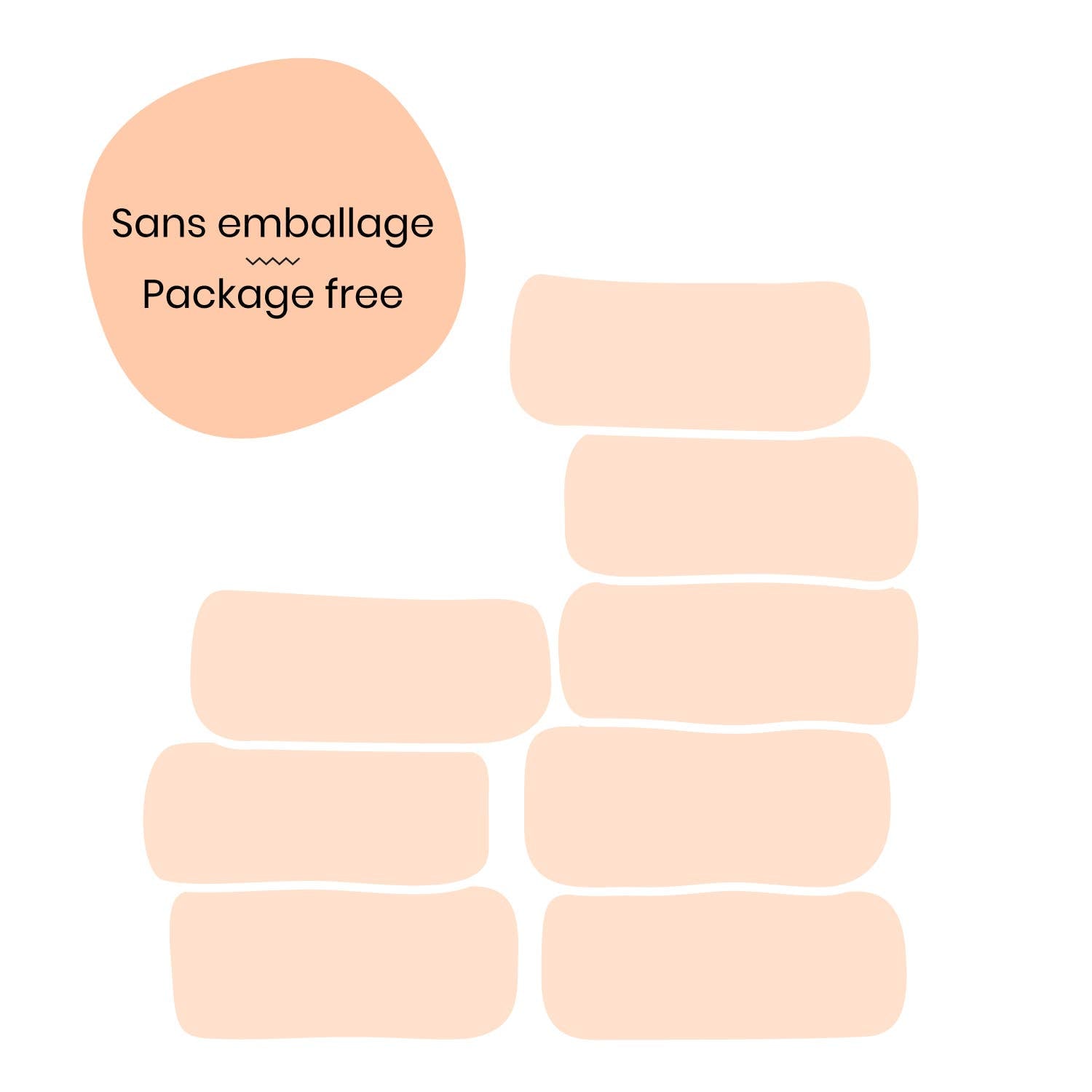 The package-free bars are very oily because of their hydrating ingredients. We recommend to put a sheet of kraft or wax paper between layers of loose bars in a jar. This gentle, soap-free makeup remover bar removes all traces of makeup from the skin to leave it clean, purified and hydrated! Formulated with a luxurious blend of mango and cocoa butter, jojoba, sweet almond and castor seed oil, squalane and vitamin E, it removes makeup effectively and gently, while respecting the pH of the skin. It is also gentle enough to remove eye makeup without stinging. This bar leaves skin hydrated with no greasy effect. Free-from: Sulfates, silicone and parabens 55g