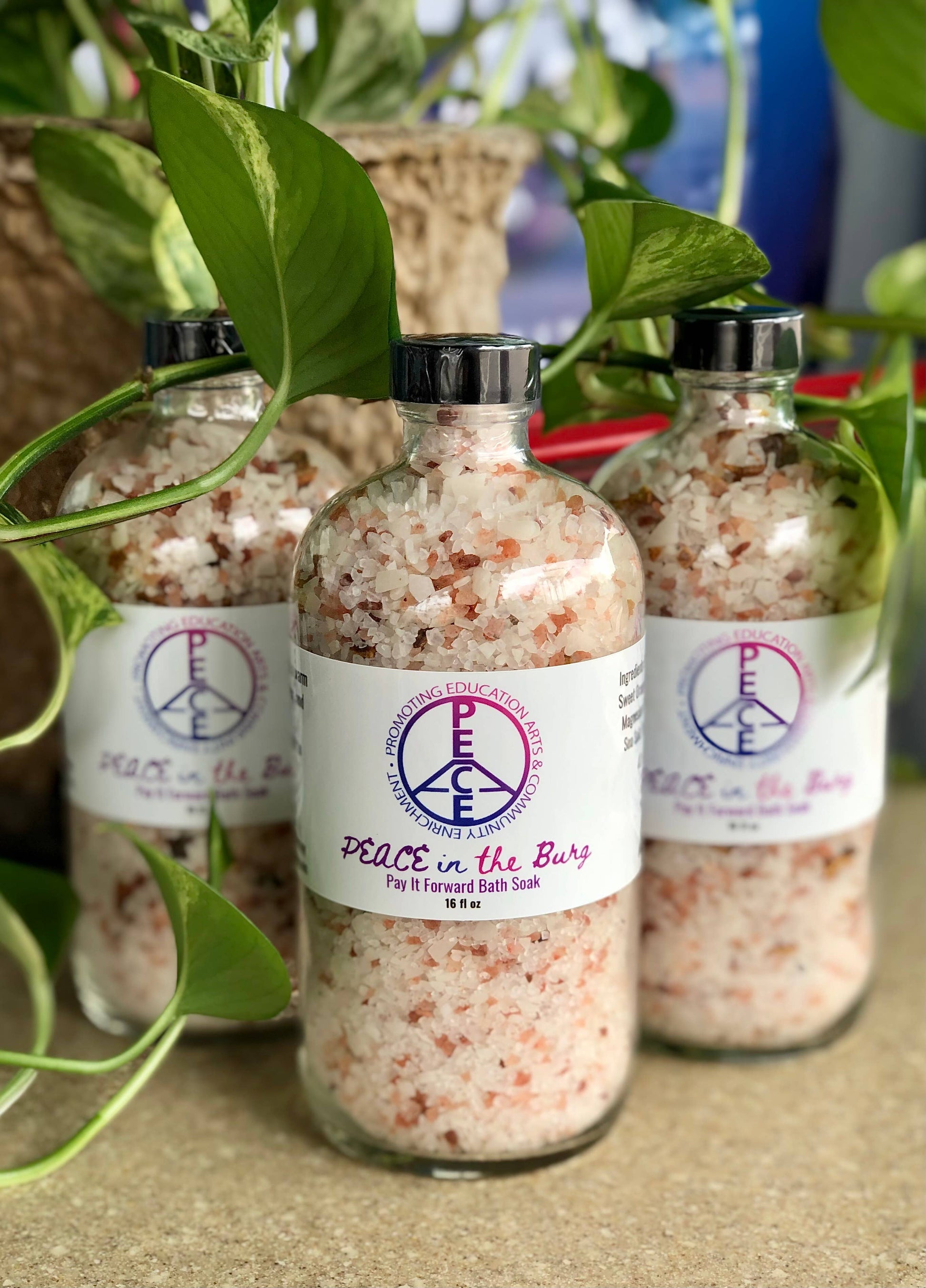 This uplifting bath soak was made in collaboration with PEACE. PEACE supports Promoting Education, Arts & Community Enrichment in the St. Petersburg, FL community.