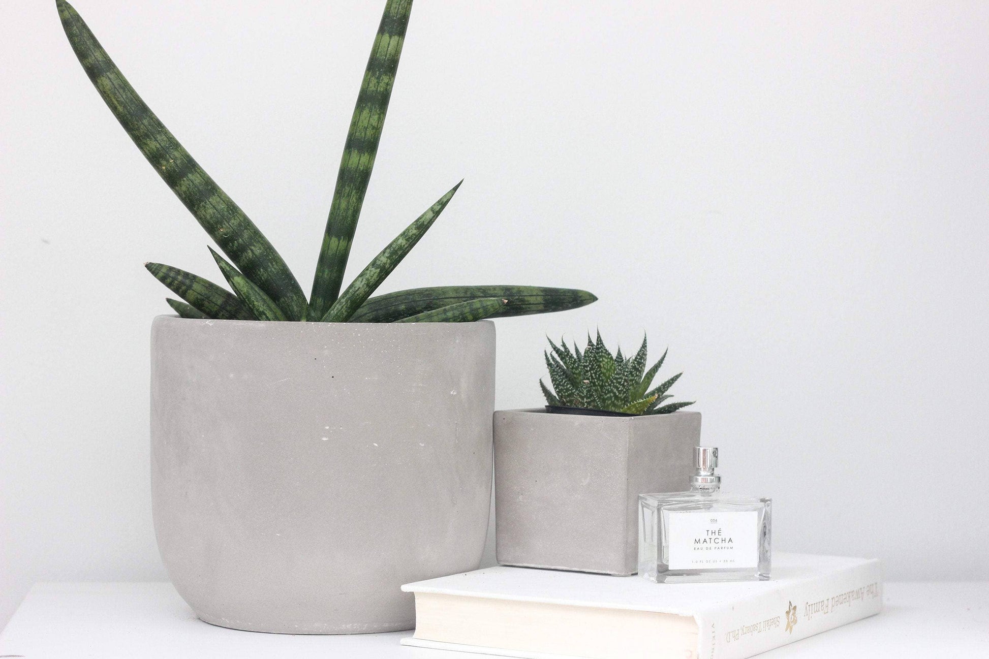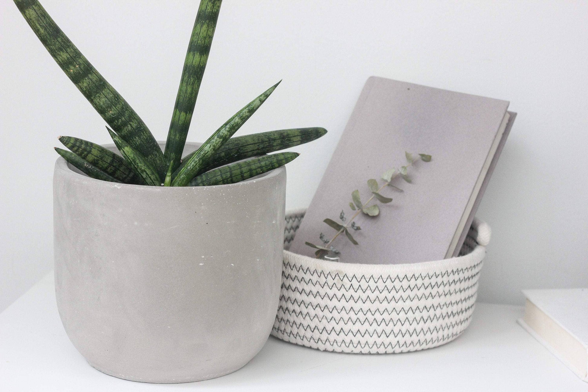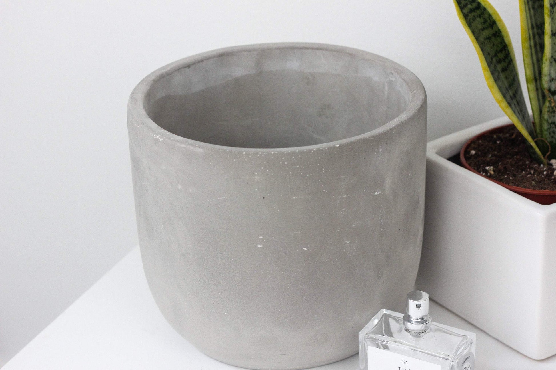 This minimal concrete planter features a modern look with its round shape and natural concrete texture. Perfect for medium sized plants, it adds a contemporary and sleek accent to your space.