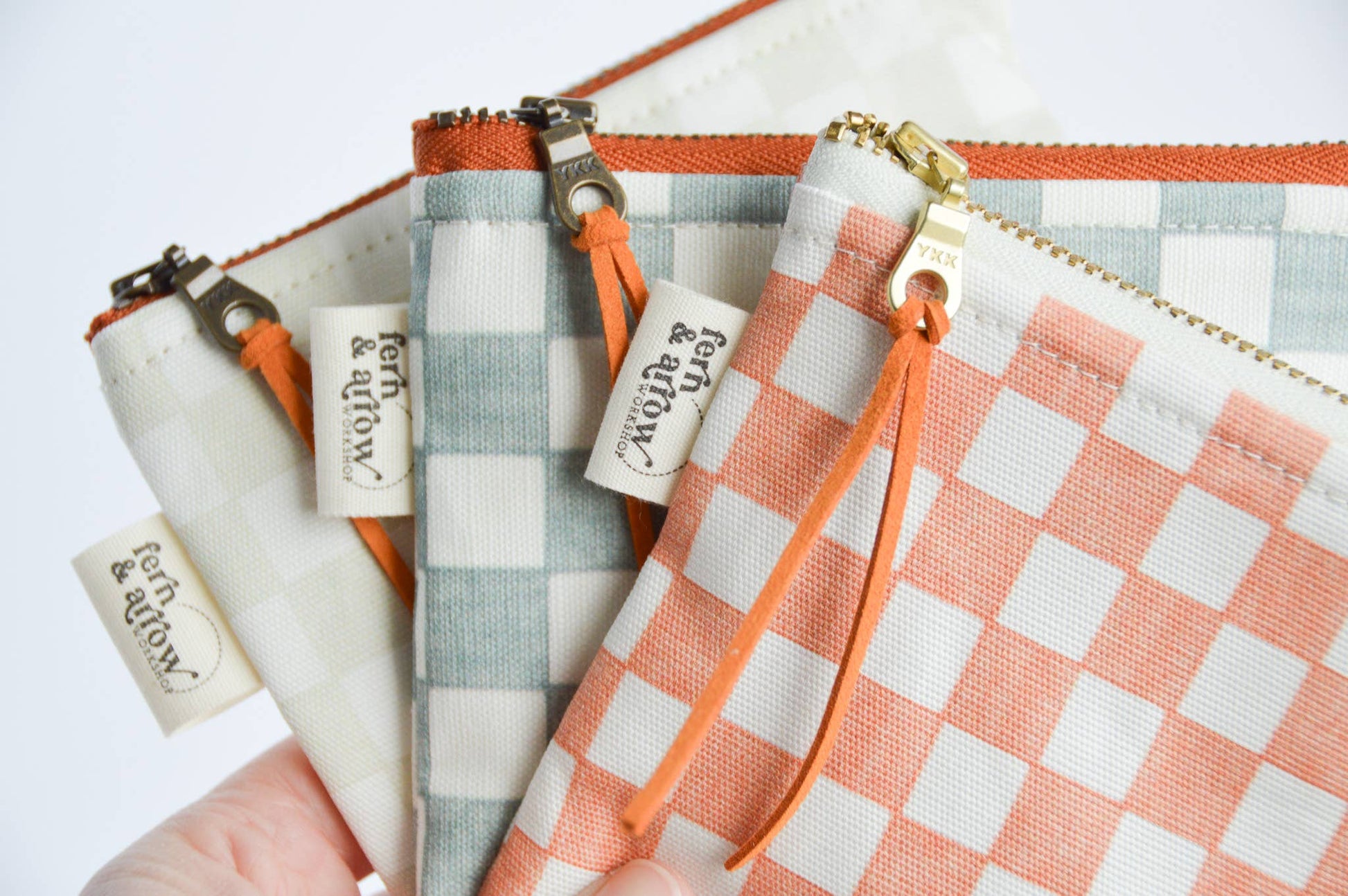 This pouch is made from linen cotton canvas + cotton poplin lining + metal zipper.