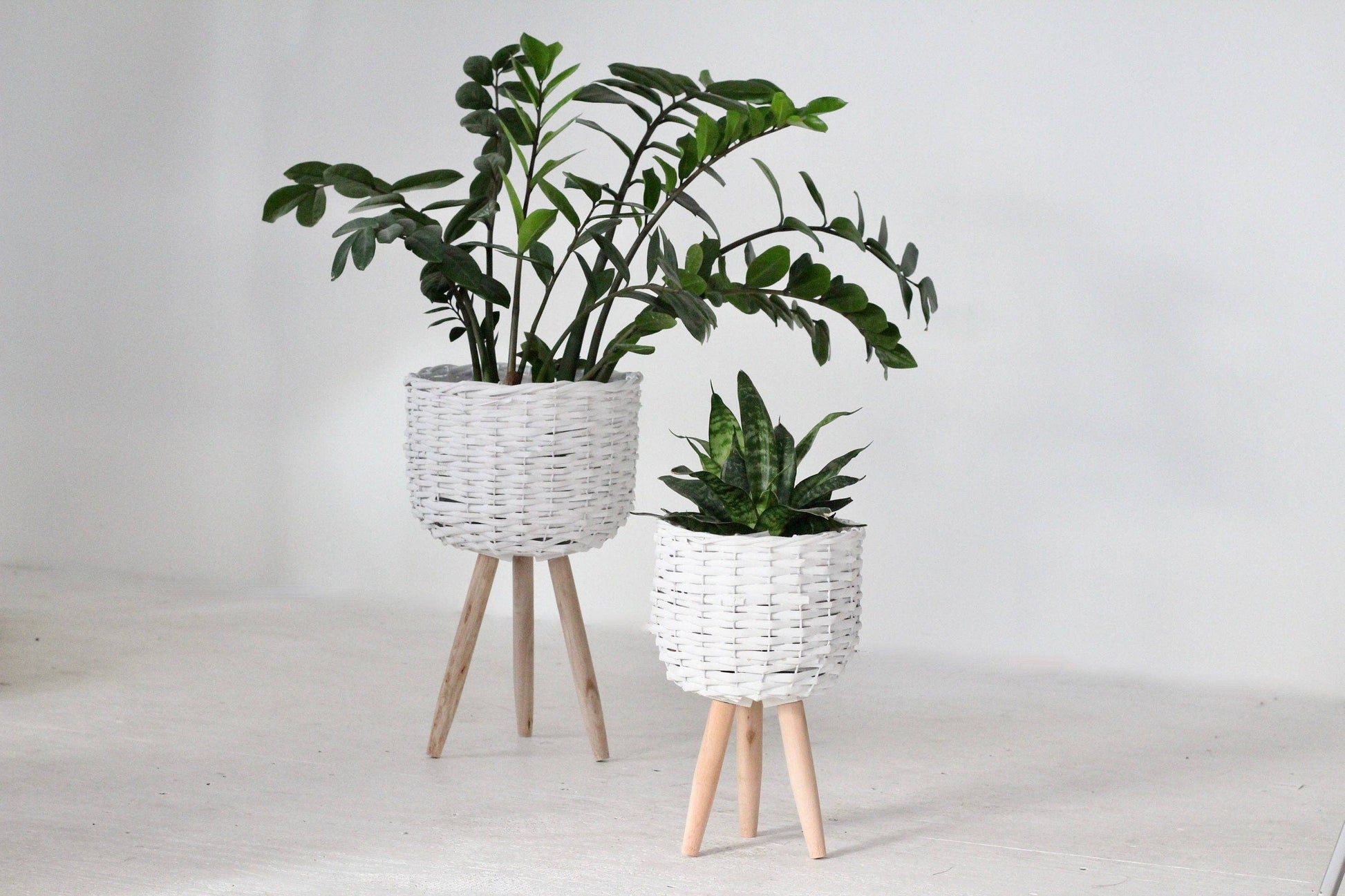 Our white boho woven plant stand comes in two sizes and is a great way to brighten your desired room as a pair or alone. It's a good choice for any boho or Scandinavian style home. This plant stand makes any plant pop as the contrasting white really works it's magic to allow for a mutually beneficial relationship with your favorite plants.